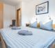 2 getrennte Schlafzimmer mit je einem Doppelbett (1,80 x 2,00 m, Marken Matratzen-Härtegrad 3, Verdunklungsvorhänge)