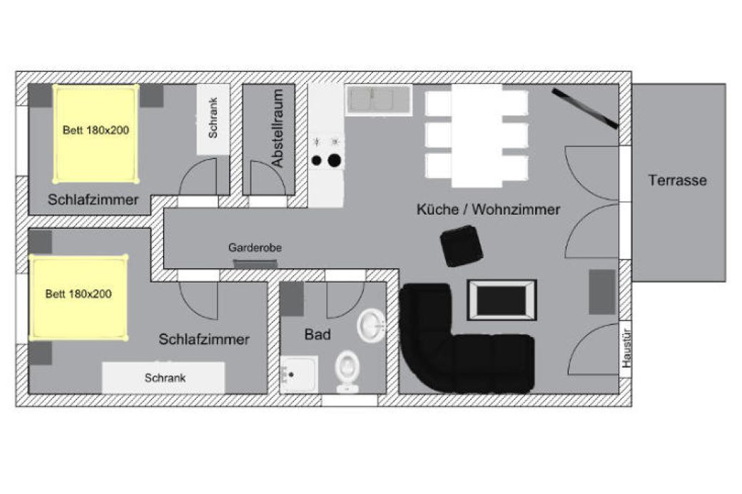eingerichtet für 4 bis 5 Personen