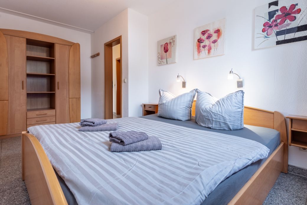 2 getrennte Schlafzimmer mit je einem Doppelbett (1,80 x 2,00 m, Marken Matratzen-Härtegrad 3, Verdunklungsvorhänge)
