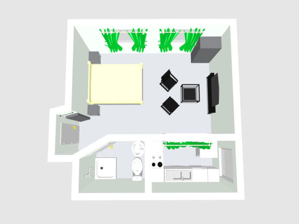 1 Schlafzimmer mit Doppelbett, Kleiderschrank, Garderobe